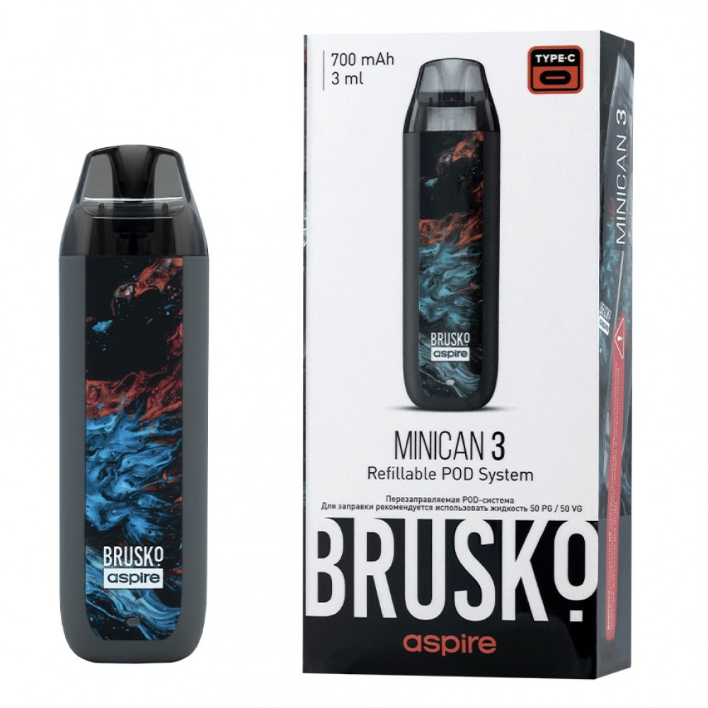 Перезаправляемая Под-Система Бруско Миникан 3 (Brusko Minican 3) 700 mah, Серый Флюид - купить в Березовском